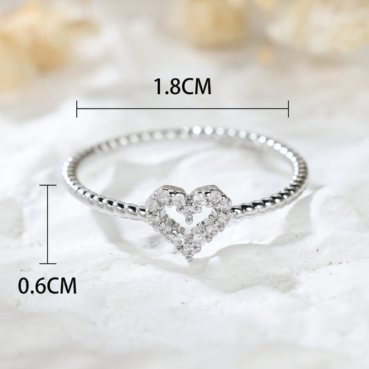 Heart Shaped White Diamond Edge Twist Hollow Ring