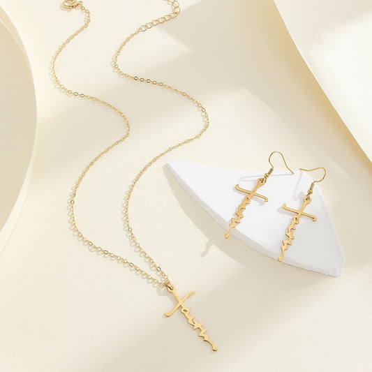 Long And Simple Cross Inspired Fashion Clavicle Chain & Earring set.
