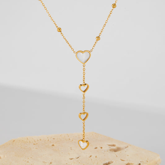 Heart Drip Necklace Pearl Top Bottom Hollow Middle