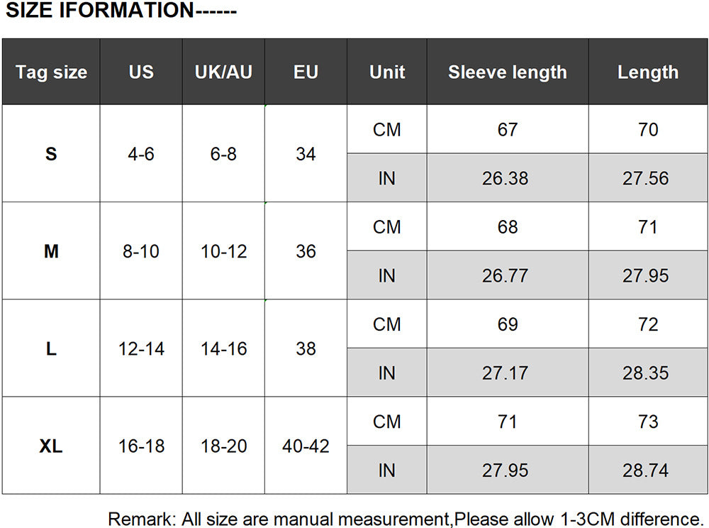 Note: 1. Asian sizes are 1 to 2 sizes smaller than European and American people. Choose the larger size if your size between two sizes. Please allow 2-3cm differences due to manual measurement. 2. Please check the size chart carefully before you buy the item, if you don't know how to choose size, please contact our customer service. 3.As you know, the different computers display colors differently, the color of the actual item may vary slightly from the following images.