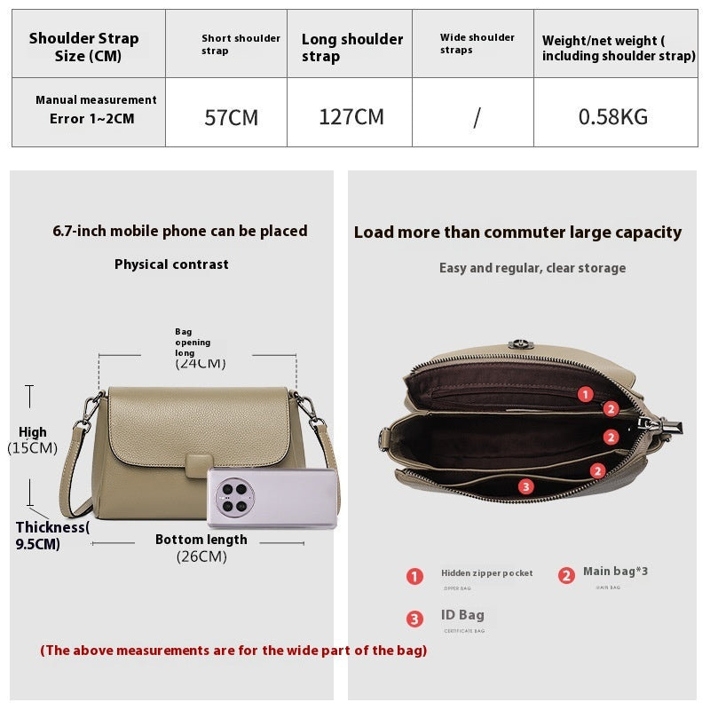 Cowhide Stylish Simple And Versatile Crossbody Women's Bag