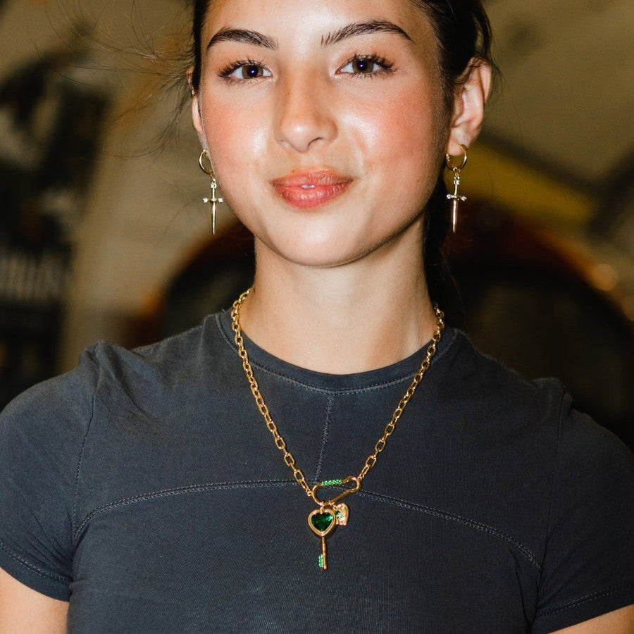 Emerald Love Key Inlaid Zircon Pendant Necklace