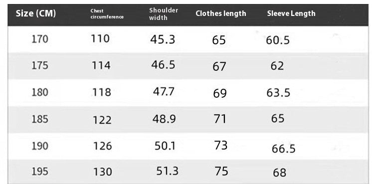 Size: 170,175,180,185,190,195