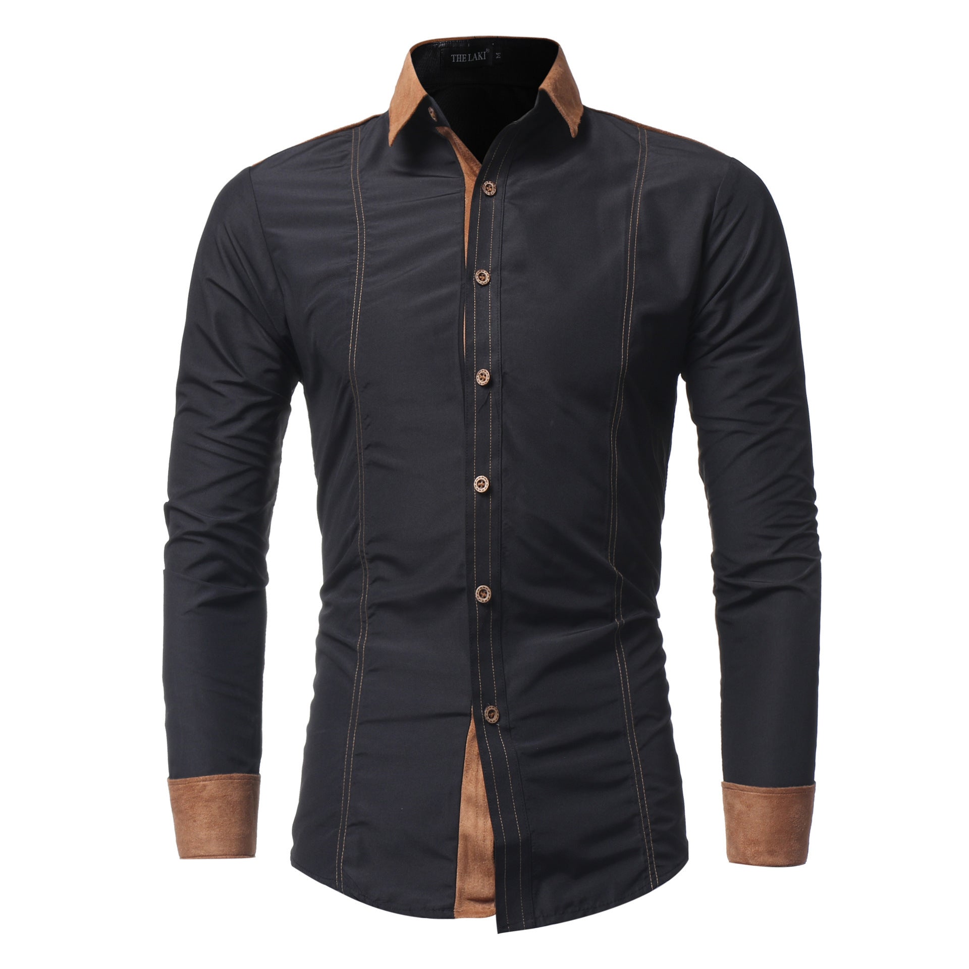 Men's Long-sleeved Shirts Featuring Deerskin Collar