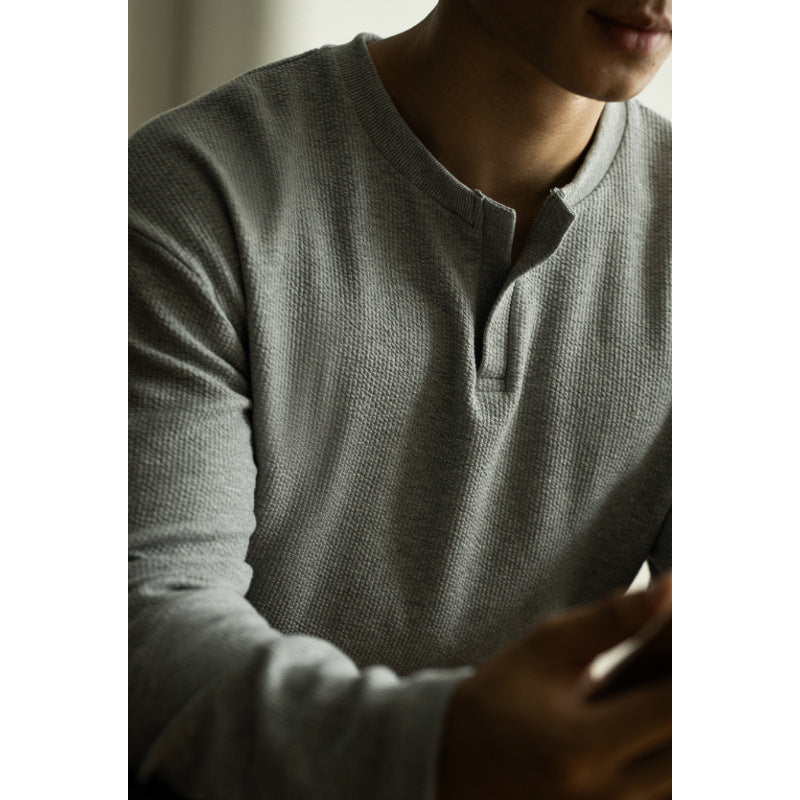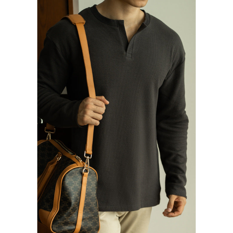Men's Textile V Neck Long Sleeved Shirt