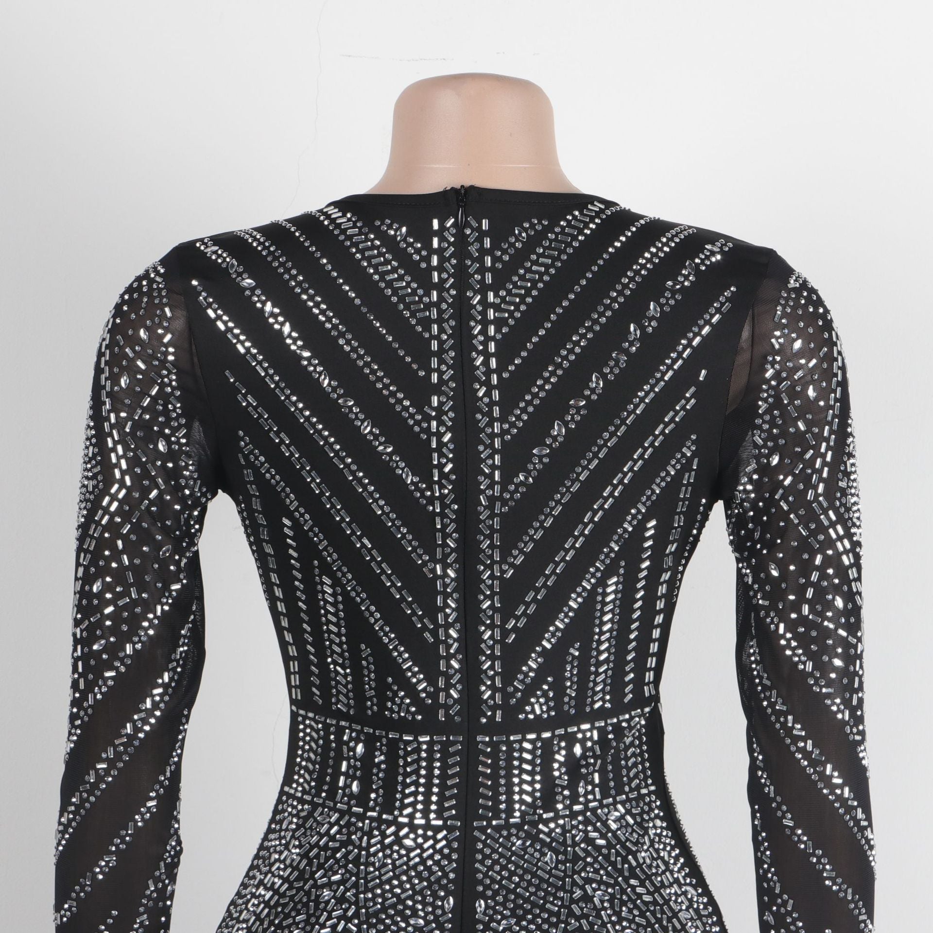Craft: hip-wrapped rhinestone V-neck elastic tight jumpsuit