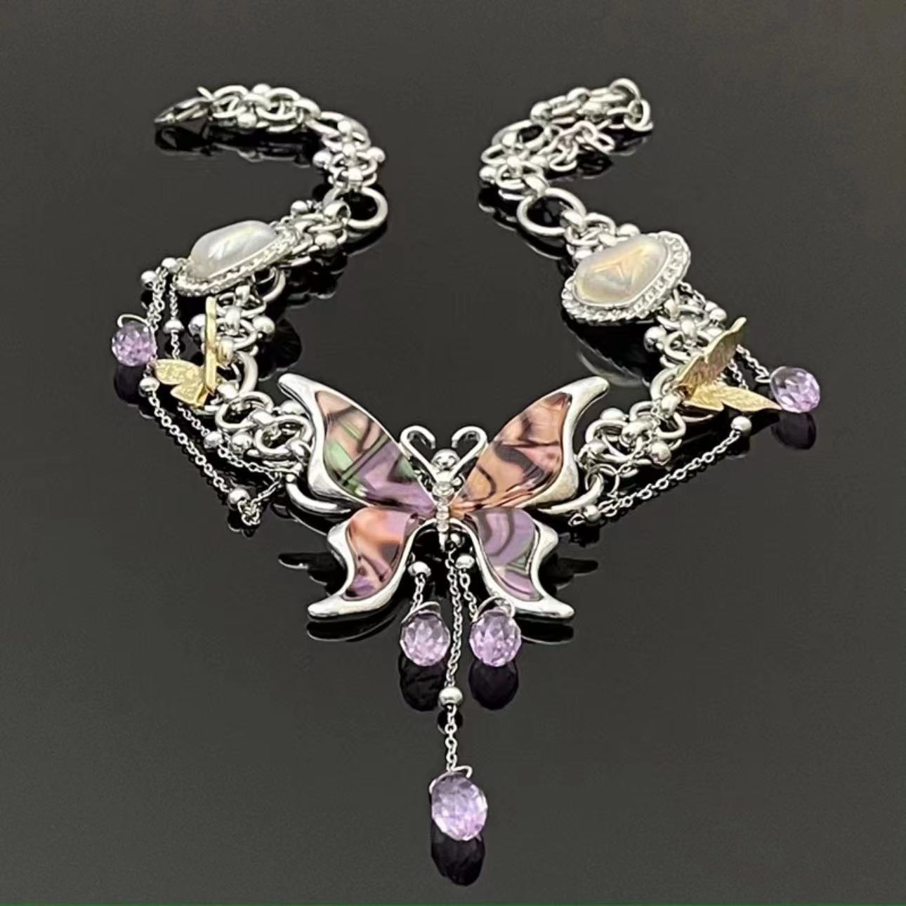 Sweet Cool Hot Girl Dream Butterfly Stitching Water Drop Tassel Necklace