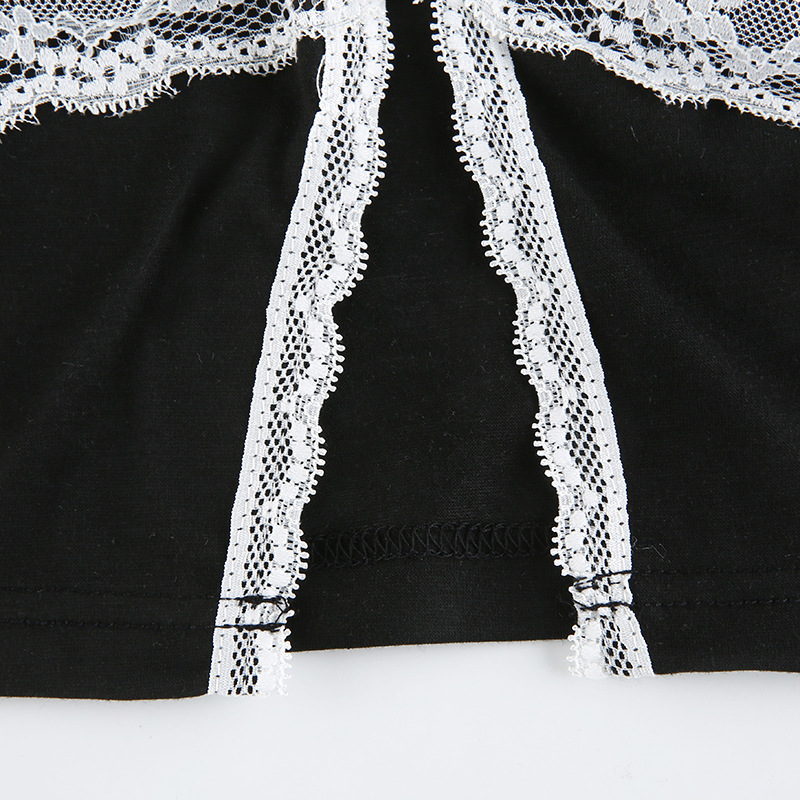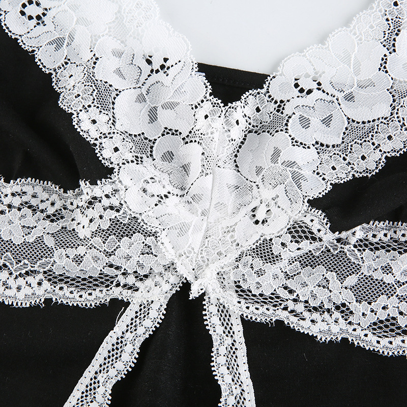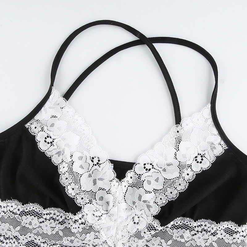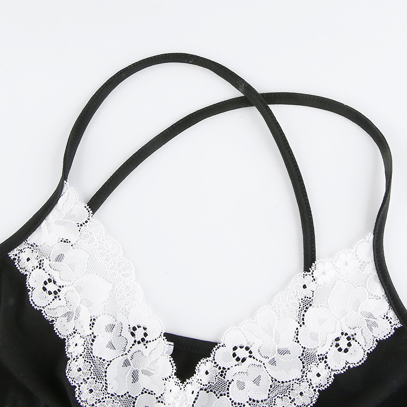 V-Neck Black And White Contrast Lace Split Camisole