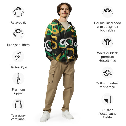 Stay warm & cozy in style. This comfy unisex hoodie has a soft outside with a vibrant print and an even softer brushed fleece inside. The hoodie has a relaxed fit, and it’s perfect for wrapping yourself into on a chilly evening.